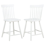 Classic and casual with a fresh farmhouse flair, this Windsor-style counter height chair features a high spindle back and gently contoured seat for timeless comfort. The clean silhouette is crafted from solid rubberwood with a rich wood veneer that enhances its natural grain. Angled legs with double stretchers offer reliable support and charm. Ideal for kitchen islands, pub tables, or counter-height dining spaces. Key Features: • Windsor-style counter height chair in light ash finish brings casual elegance to kitchen counters • High spindle back and curved seat on this counter chair support relaxed, upright dining comfort • Angled leg design adds stability while enhancing its signature farmhouse-style silhouette • Footrest stretchers provide extra comfort and structural integrity for daily use • Crafted from solid rubberwood and topped with a warm-toned wood veneer for natural appeal • Clean, timeless lines and elevated height work perfectly with counter-height tables or bars