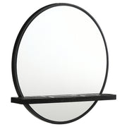 This wall-mounted vanity mirror blends modern sophistication with natural coastal warmth. A round wood frame in a soft sand wash finish highlights subtle wood grain texture, while a built-in shelf with a raised-edge jewelry tray offers space for perfumes, cosmetics, or accessories. Designed for both beauty and function, it keeps essentials within reach while maintaining a clutter-free appearance. Ideal for bedrooms, dressing areas, or entryways, this mirror adds depth and serene style to any space._x005F_x000D_ Key Features: • Round wall-mounted mirror crafted in a soft sand wash wood finish for natural warmth • Integrated shelf includes a raised-edge jewelry tray for safe storage of small essentials • Ideal surface for displaying perfumes, cosmetics, or decorative accessories with ease • Wire-brushed wood texture enhances visual depth and organic coastal sophistication • Constructed from durable rubberwood, engineered wood, and supportive plywood framing • Adds functional elegance and airy modern charm to bedrooms or dressing spaces