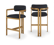 Aurum - Vegan Leather Upholstered Counter Stool - Black / Brushed Brass