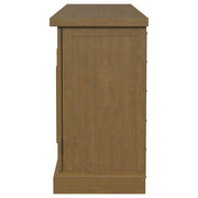 This four-door sideboard offers a refined blend of storage and style, perfect for dining and entertaining spaces. Crafted from pine, plywood, and pine veneer, it features a beautifully planked top that enhances its rustic charm. Raised panel doors lend a classic, sophisticated appeal, while the spacious interior includes two nested drawers with self-closing metal slides for effortless organization. This versatile piece functions beautifully as a server, providing ample space for dishware and linens. With its elegant craftsmanship, it also serves as a buffet, adding both convenience and timeless appeal to any home. Key Features: • Four-door sideboard with raised panel doors for a classic, textured look • Pine, plywood, and pine veneer construction ensures lasting durability • Planked top highlights the natural grain with a rustic honey finish • Spacious interior storage includes two nested drawers for organization • Self-closing metal slides ensure smooth and effortless drawer operation • Warm rustic honey tone enhances farmhouse and traditional decor