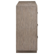 Enjoy the roomy storage and understated character of a modern six-drawer dresser. It's a fresh, understated design that showcases a wide top and recessed base that pair to deliver a timeless look. The dresser shows off wood grain details in a neutral barley brown finish, delivering stylish flair that complements in any setting. Each drawer is equally sized for easy storage and organization. Chrome finish bar pulls add a touch of contrast and textural appeal. Key Features: • Augment your bedroom with the easy, stylish storage featured in this modern six-drawer dresser • Barley brown finish is soft and neutral, offering a fresh palette for the decor of your choice • Six drawers of equal size provide ample storage for clothing, accessories and linens • Mitered trim adds dimension while chrome finish bar pulls complete the look • Recessed base lightens the look while a wide top is ideal for personal decor