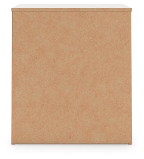 - Matte white finish with subtle replicated wood grain