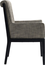 A masterpiece of modern elegance and comfort, the Gwendolyn linen textured fabric dining armchair is where modern design meets timeless charm. Designed with comfort in mind, it features a high back and luxurious cushioning, perfect for long dinners or lively gatherings. The black wood frame adds a rustic touch, effortlessly balancing the contemporary fabric with a hint of warmth and tradition.