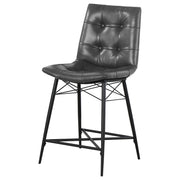 Cool and cozy, this counter height stool is the ultimate dining room upgrade. The padded seat is wrapped in smooth leatherette for an inviting look and feel. Button tufting adds a subtle, decorative touch. A sleek, metal base gives it a modern look while providing plenty of support. Crafted for comfort and lasting durability, this contemporary stool is a smart and stylish choice for the modern home. Key Features: • Cool and cozy counter height stool with padded seat wrapped in smooth leatherette and button tufting for a subtle, decorative touch • Sleek metal base provides modern look and lasting durability • Ideal for modern home, providing comfort and support • Inviting look and feel with contemporary design • Ultimate dining room upgrade for lasting style