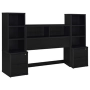 This 3-piece bedroom set includes a bookcase headboard and two coordinating nightstands designed for practical bedroom storage. Open cubbies on the headboard and hutches keep books and essentials within reach, while lockable top drawers add secure storage. Each nightstand features built-in USB-A and USB-C charging ports. Made from engineered wood and finished in a scratch-resistant laminate veneer, the set delivers durability and everyday convenience across a range of room styles. Key Features: • Three-piece bookcase headboard and nightstand set offers cohesive and functional bedroom storage • Scratch-resistant laminate veneer finish over engineered wood construction • Open cubbies on headboard and nightstands provide easy access to frequently used items • Top drawers on nightstands are lockable for secure storage of personal belongings • Each nightstand includes USB-A and USB-C charging ports for bedside connectivity • Versatile, space-saving design fits seamlessly into a variety of bedroom settings