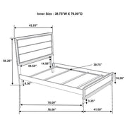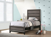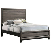 This modern panel bed combines sleek form and transitional appeal to create a timeless centerpiece for any bedroom. Crafted from durable engineered wood, it features a two-tone grey oak and black finish that adds depth and contrast. The framed headboard and matching footboard showcase recessed horizontal grooves for subtle texture and visual interest. Supported by solid hardwood legs, this bed blends durability with contemporary sophistication and pairs effortlessly with a variety of bedroom furnishings. Key Features: • Transitional panel bed crafted with engineered wood for lasting support • Grey oak finish pairs with sleek black framing for modern contrast • Recessed grooves on headboard and footboard add depth and texture • Framed design creates a clean, dimensional silhouette • Black solid hardwood legs provide stability and timeless appeal • Foundation required; complements both casual and refined spaces