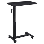 Transform your bedroom into a functional retreat with this height-adjustable C-table, designed specifically for use while reclining in bed. The 28-inch wide wood-inspired top offers ample space for working, dining, or reading. Featuring a smooth hand-crank mechanism, the table adjusts from 27 to 39 inches in height for personalized comfort. Its heavy-duty steel base, finished in a matte black powder coat, ensures durability and stability, making it the perfect bedside companion. Key Features: • Height-adjustable C-table with a 27-39 inch range • 28-inch wide mango-inspired top ideal for bedroom use • Smooth hand-crank mechanism for precise adjustments • Heavy-duty steel base with a matte black powder-coated finish • Spacious surface for working, dining, or reading in bed • Sturdy and reliable design tailored for bedside convenience
