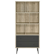 A nod to Euro design concepts adds a Scandinavian vibe to a bookcase you’ll want to consider. Make room for those scattered books and magazines in a central unit with a rustic feel and high vertical profile that saves space. This bookcase is made of antique pine finished rubberwood, hollow board, and assorted materials with a grain pattern creating eco-inspired organic beauty. Your living room or bedroom is the perfect spot for a bookcase with three alternated shelves featuring vertical dividers separating books, décor, and plants. Two lower drawers increase storage space, as splayed, tapered gray finish metal legs add a familiar style. Key Features: • Antique pine finished rubberwood and hollow board construction with grain pattern for organic beauty • Three alternated shelves with vertical dividers for books, décor, and plants • Two lower drawers for increased storage space • Splayed, tapered gray finish metal legs for a familiar style • Scandinavian vibe with Euro design concepts for a rustic feel and high vertical profile