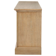 Combining beauty with purpose, this four-door dining sideboard delivers generous interior storage wrapped in timeless style. Behind each antique mirrored door are adjustable shelves, ideal for keeping serveware, linens, or entertaining essentials neatly organized. The barley brown finish brings warmth and texture to its classic silhouette, while matte black hardware adds contrast and sophistication. Crafted from solid rubberwood, engineered wood, and ash veneer, this piece embodies enduring elegance and practicality. Key Features: • Dining sideboard features four antique mirrored doors with adjustable interior shelving • Ample cabinet space stores dinnerware, linens, and entertaining essentials • Barley brown wood finish offers warmth and refined transitional appeal • Matte black hardware creates a striking accent against the light-toned frame • Crafted from solid rubberwood, engineered wood, and ash veneer for strength • Ideal buffet cabinet for dining rooms seeking functional and elegant design