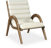 Elevate your surroundings with the Randal vegan leather upholstered accent chair, featuring rich vegan leather and a brown walnut finish wood frame. Designed with deep channel tufting, this Art Deco-inspired piece offers both style and comfort, making it a standout addition to any modern or classic interior. The sleek combination of luxe upholstery and warm wood tones creates a sophisticated contrast, perfect for adding a touch of elegance to your living room, office, or lounge area.