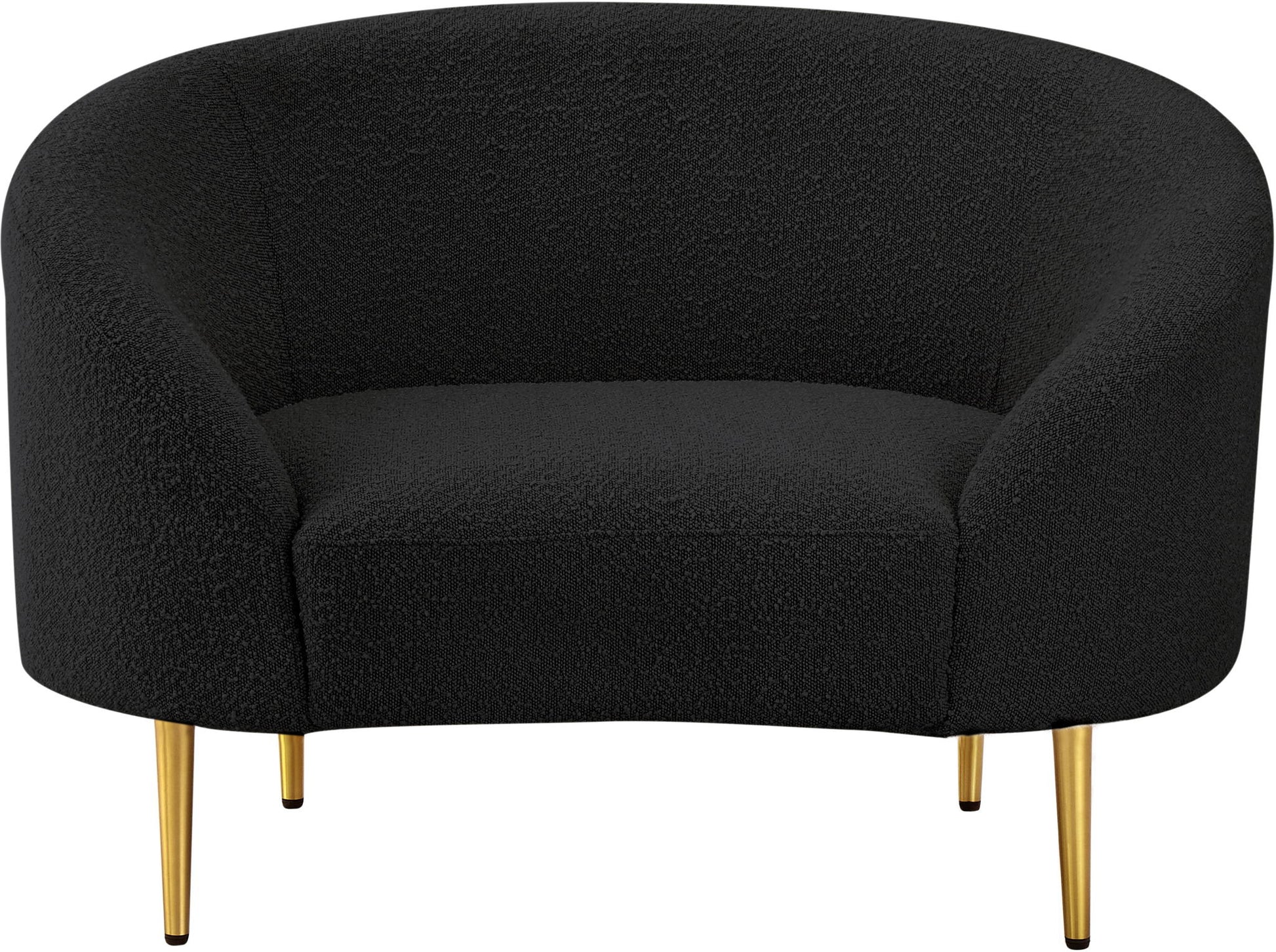 Impress family and guests alike with this Ritz Boucle Fabric Chair. Wrapped in a cozy boucle fabric, this chair exudes elegance and comfort. The gold metal legs add a touch of glamour to the overall design, making it a perfect addition to any modern living space. Sit back, unwind, and sink into the plush cushions of this chic and stylish chair.
