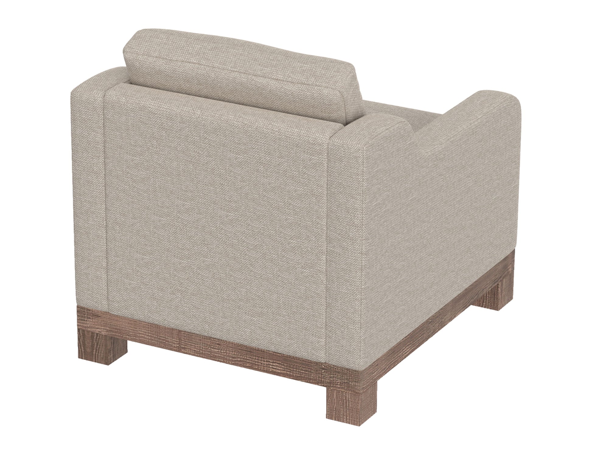 Wooden Frame & Base, Armchair. With its chunky, wide silhouette, the Samba collection infuses your living room with a touch of traditional charm. Supported by a sturdy frame crafted from solid pine wood, it rests gracefully on low-profile block feet with a rich hue.