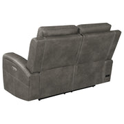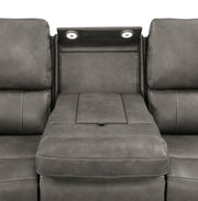 This triple power sofa set is crafted for complete relaxation and everyday luxury. Wrapped in soft leatherette with contrast stitching, each piece offers smooth reclining, adjustable lumbar, and power headrest support at the touch of a button. Hidden cup holders are tucked within each armrest, while a built-in control panel with USB A and USB C charging ports keeps essentials close. A rear-mounted power access panel includes an emergency battery feature for uninterrupted comfort, even during power loss. Key Features: • Triple power sofa set with power headrest, power lumbar, and smooth reclining support • Charcoal leatherette upholstery with contrast stitching adds modern texture and comfort • Hidden stainless steel cup holders in armrests keep beverages within easy reach • Power control panel includes USB A and USB C charging ports and home button • Rear AC power panel supports direct wall plug-in and optional 9V battery backup • Built from leatherette, foam, engineered wood, pine, and metal for lasting durability