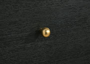 Put finishing touches on a sophisticated bedroom ensemble with this modern two-drawer nightstand. Offering roomy storage for overnight essentials, it features a rich black finish over melamine surfaces that are designed for longevity. The nightstand features a rounded corner case, creating a softened effect in a luxurious space. Drawer fronts are complemented with brass-finished ball knobs, adding the perfect hint of warmth and sophistication. A recessed base completes the look, while metal drawer glides provide for smooth, seamless operation. Key Features: • A modern two-drawer nightstand creates a stylish accent while providing ample bedside storage • Features a black finish frame with rounded corners that create an inviting presentation • Charming petite ball knobs receive a brass finish, adding glamour and contrasting dimensionality • Made with melamine veneer that resists scratches and dents for excellent longevity and performance • Drawers feature metal extension glides for seamless performance and operation