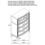 Complete your primary suite with this stunning, glam bedroom set, featuring a lovely platform bed, nightstand, dresser, and mirror combo in a gorgeous silver oak finish with glittering accent panels. The platform bed boasts a beautiful double arch headboard and matching footboard, designed with a channel tufted, foam padded insert upholstered in a soft, ivory fabric that invites you to lean back and relax. Soft, grey, felt-lined top drawers in the dresser and nightstand keep delicates protected, while the nightstand offers a built-in USB port to keep handheld devices charged as you prepare for the day. Slender hexagon-shaped hardware with pearlescent accents adorns each of the curved drawer fronts, allowing you to grab items easily. A double arch framed mirror with a timeless beveled edge offers a contemporary flair and sleek attention to detail. Key Features: • Double arch head and footboards feature lush ivory fabric upholstery with foam padding • Silver oak finish with glimmering accent panels is elegant and modern, delivering a glam finishing touch • Framed beveled mirror creates an instant dressing vanity setup • Hexagonal shaped hardware with pearl-like center accents offer a modern flair • Soft grey felt lining on the top dresser drawers offer space for delicates