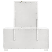 Elegant simplicity defines this dresser and mirror set, offering balance between refined design and everyday function. The six-drawer dresser provides generous storage, while the coordinating beveled mirror brings light and dimension to the room. Sleek bar pulls complement the sturdy wooden construction, creating a harmonious blend of practicality and sophistication. Perfect for modern bedrooms, this pairing completes the space with enduring grace and quiet elegance._x005F_x000D_ Key Features: • Six-drawer dresser and mirror set designed with crisp modern geometry • Snow white finish brightens and refreshes the surrounding space • Coordinating beveled mirror adds dimension and refined contrast • Felt-lined top drawers cradle keepsakes and delicate accessories • Silver-tone bar pulls highlight the sleek and graceful silhouette • Rubberwood and engineered construction ensures lasting durability