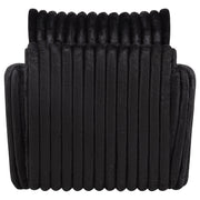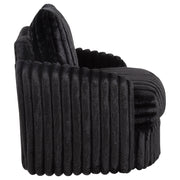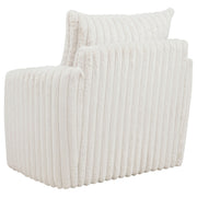 Contoured for comfort and wrapped in plush texture, this swivel chair invites relaxed movement with a soft, sculptural silhouette. Deep channel tufting traces every curve, from the wide seat to the tailored backrest and arms. Fully upholstered in ribbed corduroy and built with layered foam, this lounge chair rotates 360 degrees for flexible conversation. Ideal for modern living rooms, reading corners, or cozy bedrooms. Key Features: • Swivel chair in ivory corduroy features deep channel tufting and soft sculptural shaping • Full 360-degree swivel base allows flexible movement in open or compact spaces • Thick foam cushions provide a plush seating experience with lasting support • Fully upholstered arms and back offer a continuous wrap of ribbed corded texture • Framed in engineered wood for durability and built-in strength beneath soft contours • Modern swivel lounge chair suits bedrooms, living rooms, or cozy reading spaces