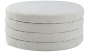 Liven up your living space with this Aphia boucle fabric ottoman/coffee table from Meridian Furniture. Featuring rich boucle fabric upholstery, this ottoman offers softness to the touch and style to the eye. Deep channel tufting gives the appearance of multiple layers stacked together, making it a contemporary piece perfect for any modern home. Pair this ottoman with a matching sofa, or use it as a stool to provide extra seating when you have visitors.