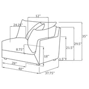 Complete your modular sectional with this left arm facing (LAF) chair, offering both style and comfort to your living room. The barely black fabric upholstery adds a dramatic yet versatile appeal, seamlessly blending with contemporary decor. Filled with foam and feathers, this chair provides plush seating that invites relaxation. Its sturdy pine wood and plywood construction ensures lasting durability, while the left armrest design is perfect for customizing your sectional layout. Removable back and seat cushions enhance comfort and make maintenance a breeze, allowing you to enjoy your sectional to the fullest.