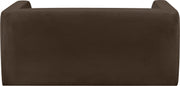Spice up your living room or den with this Henson velvet loveseat. This handsome chair has a boxy design that suits any contemporary room with ease. It's covered in rich velvet that's luxuriously soft to the touch and against the body, making it everyone's favorite seat. The solid wood frame of this modern loveseat adds durability, resilience, and long-lasting enjoyment to this loveseat, making it look right at home in your up-to-the-minute space.
