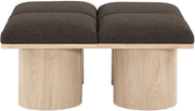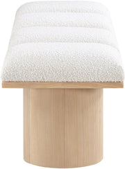 Bring valuable seating and remarkable style to your space with this Pavilion boucle fabric bench, an exquisite balance of style and usability for the entryway, bedroom, and beyond. Crafted from oak veneer with a natural finish, this bench has a 4-inch-thick seat cushion that's channel-tufted for a touch of luxury. The bench's columnar bases add a dash of art deco design, making it a captivating focal point in any room.