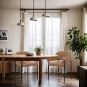 Blending effortless comfort with modern design, the Dame polyester fabric upholstered dining chair offers a relaxed, trendy look. A matte black iron frame provides contrast against the polyester textured weave of light brown, cream, and beige hues. Place it in dining spaces or casual corners for seating that feels as good as it looks.