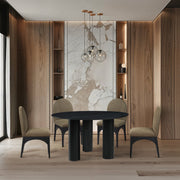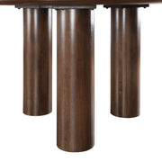 Dinner guests can't help but be impressed when they're seated at this Colosseum dining table. Its rich finish and oak veneer, crafted from a mix of solid wood and MDF, evoke mid-century modern charm. The distinctive three-column base and round top ensure ample legroom and elbow room, making it perfect for lively gatherings and intimate dinners alike. With a blend of sophistication and functionality, this table promises to be the centerpiece of memorable dining experiences in your home.
