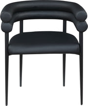 Experience the sophisticated allure of the Lavina vegan leather dining chair. This chair features a matte finish and an iron metal frame, ensuring both durability and a modern edge. The contemporary design and luxurious vegan leather elevate your dining space with effortless elegance, making it the perfect centerpiece for gatherings. Enhance your dining area where classic elegance meets contemporary flair.