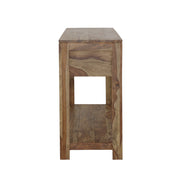 Elevate your space with the timeless beauty of this solid sheesham wood console table. Showcasing natural wood grain accents, this piece exudes rustic charm while offering practical storage. Three slide-out drawers with wooden glides provide easy access to essentials, while the spacious lower shelf is perfect for displaying décor or keeping items organized. Designed for durability and versatility, this console table is an ideal addition to entryways, living rooms, or hallways, bringing warmth and character to any setting. Key Features: • Solid sheesham wood console table with a natural woodgrain finish • Three pull-out drawers on wooden glides for convenient storage • Lower open shelf offers additional space for décor or essentials • Rustic and timeless design enhances any entryway or living space • Durable craftsmanship ensures long-lasting functionality • Versatile piece perfect for hallways, foyers, or behind a sofa
