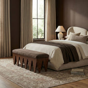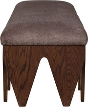 Bold and architectural, the Altair velour fur fabric upholstered bench combines avant-garde design with plush luxury. The seat is covered in soft velour fur fabric, offering an indulgent texture that invites you to sit and relax. Its distinctive rich brown walnut oak veneer wooden base, featuring sharp, angular legs, brings a sculptural, modern touch to any room.