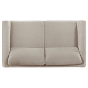 Modern lines and plush comfort come together in this upholstered loveseat, designed for relaxed refinement. A engineered wood frame in a rich coffee finish outlines its recessed panel arms, creating a clean, architectural silhouette. Wrapped in taupe polyester, the seat and back cushions are fully reversible for extended use and lasting comfort. Whether styled alone or with its matching counterparts, this piece offers balance and softness in equal measure. Key Features: • Loveseat features a low-profile design with clean lines and recessed panel arms • Engineered wood frame finished in coffee adds warmth and structured visual contrast • Taupe polyester upholstery offers soft texture and durable everyday use • Reversible seat and back cushions provide flexible comfort and long wear • Plush cushions offer relaxed support while maintaining a tailored look • Complements the matching sofa and chair for a cohesive living room ensemble