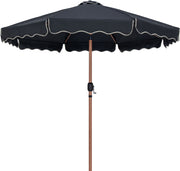 Amalfi - With Cream Piping Aluminum Patio Umbrella With Black Base / Teak Pole - Black