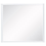 This bedroom set combines soft curvature and linear polish in a clean modern silhouette. Each piece features elongated brushed nickel pulls and subtle vertical tube accents that frame smooth white surfaces. The bed softens the look with a light grey upholstered headboard and footboard, adding contrast and comfort. Built from solid rubberwood, engineered wood, and laminate veneer, this set balances elegance with practical everyday function. Key Features: • Bedroom set features rounded silhouettes and clean lines for modern storage and sleep • White finish pairs with brushed nickel pulls and vertical metal tube detailing • Bed includes light grey fabric panels with soft foam for cushioned comfort • Felt-lined top drawers offer tinted interiors and integrated charging access • Drawers glide on 45mm metal runners with dovetail joints for smooth daily use • Built from solid Asian hardwood, engineered wood, and a smooth laminate veneer