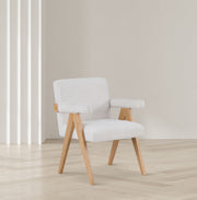 Add a touch of modern comfort to your space with this Woodloch boucle fabric accent chair. Upholstered in rich boucle fabric on the seat, back, and arms, this chair features a natural finish solid wood frame for a beautiful contrast that draws the eye in an instant. Add this handsome seat to your living room or elsewhere for a boost of contemporary panache.