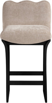 Sculptural curves and plush chenille transform the Shaw counter stool into a show-stopping statement piece. Anchored by a black oak veneer base, this art deco-inspired stool radiates bold sophistication. Elevate your dining space with a striking blend of comfort and couture-worthy style.