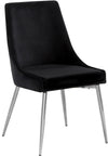 Extend contemporary panache to the dining room with this Karina Dining Chair. This dining chair features upholstery in sleek velvet for a modern look and has an armless design for a retro-inspired vibe. The stark color makes it easy to blend in with your existing decor colors or make a contrasting statement with ease. The slanted legs of this chair are finished for added modernity and to provide reliable and durable support while you dine.
