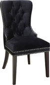 Dine in luxurious style with the Nikki velvet dining chair. Featuring a curved high back, plush cushioned seat and deep tufted velvet upholstery studded with nailheads, this dining chair is sure to take your dining experience to a whole new level.
