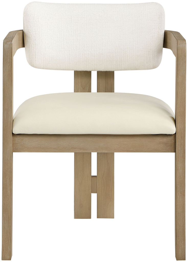 Ravina - Vegan Leather and Linen Textured Fabric Upholstered Dining Chair (Set of 2) - Cream / Stained Natural