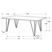 Create a casual dining experience with this rustic industrial dining table, designed with a spacious sheesham wood tabletop in a grey finish and natural live-edge details. Retro-inspired hairpin metal legs in a bold gunmetal finish lend an industrial touch that elevates the rich, charming nature of this dining table. Key Features: • Dining table crafted from solid grey sheesham wood with live edge • Gunmetal hairpin legs give an industrial vibe and visual contrast • Rectangular top offers generous surface with visible grain patterns • Transitional look mixes rustic wood and retro metal design details • Durable sheesham wood top ensures strength and organic texture • Hairpin metal legs finished in bold gunmetal tone for visual edge