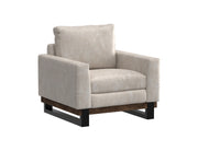 Metal & Wood Base, Armchair. Elevate your living space with the luxurious comfort and timeless style of the Blackburn collection. This sofa features a sturdy base crafted from a combination of wood and metal, creating a seamless fusion of materials that radiates a contemporary aesthetic. The Blackburn collection is your key to creating the ideal haven for gatherings and relaxation.