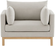 Let the cares of the day drift away when you're relaxed from the comfortable confines of this Lanham linen textured fabric chair. The boxy design is modern and chic with a mid-century vibe, and the chair rests on a solid wood frame for impeccable durability. Linen textured fabric upholstery covers the sides, back, and cushions of the chair, while two plump pillows on either side make it an extra comfy seating option that everyone loves.