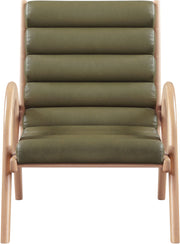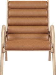 Elevate your surroundings with the Randal vegan leather upholstered accent chair, featuring rich vegan leather and a natural finish wood frame. Designed with deep channel tufting, this Art Deco-inspired piece offers both style and comfort, making it a standout addition to any modern or classic interior. The sleek combination of luxe upholstery and warm wood tones creates a sophisticated contrast, perfect for adding a touch of elegance to your living room, office, or lounge area.