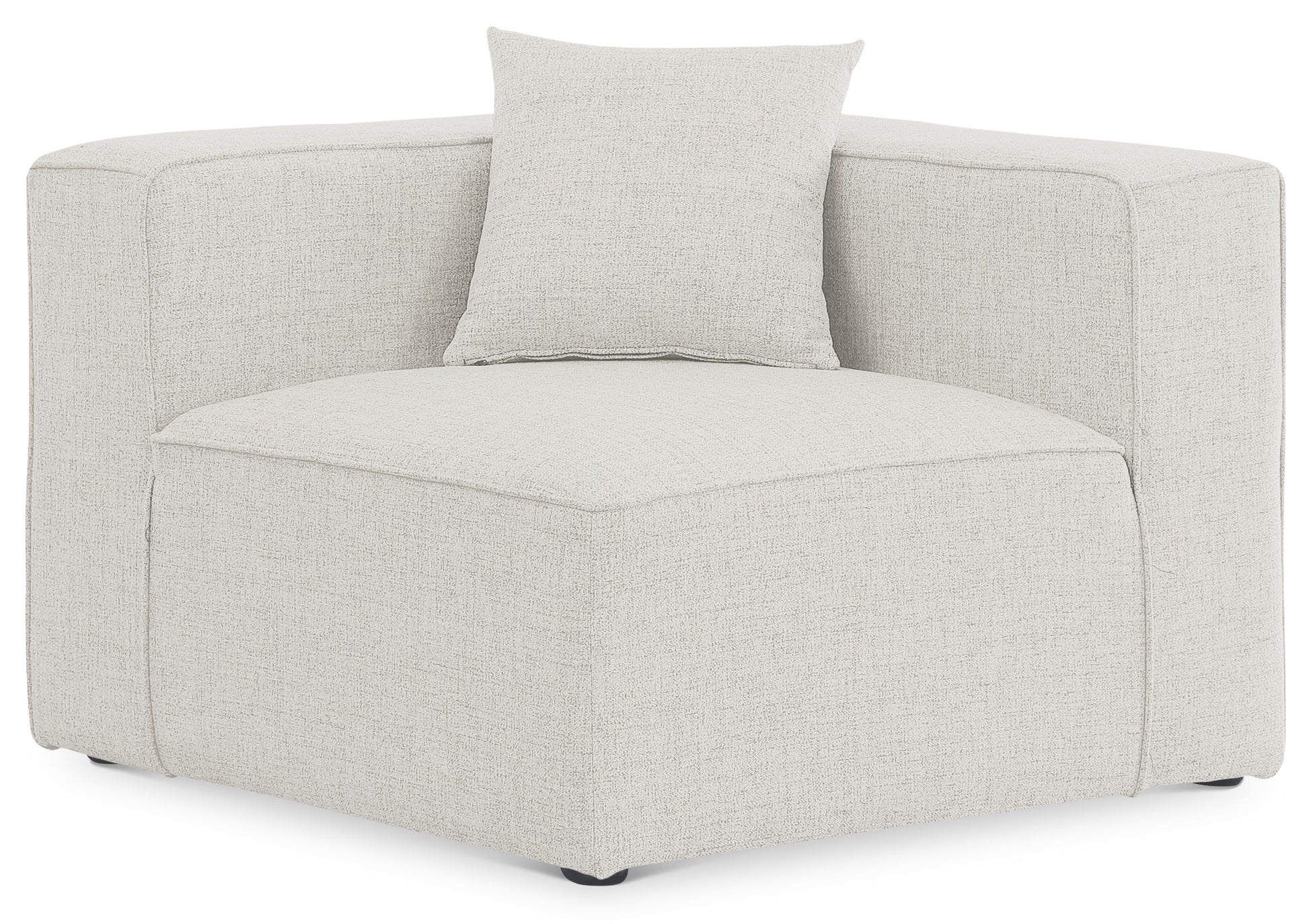Treat yourself to some long overdue "me time" when you're seated on this Cube Modular Corner Chair. This beautiful modular unit is both eye-catching and elegant, features durable linen upholstery in a soft color that meshes well with nearly any existing color scheme. Pair this modular Corner Chair with other items in the same collection to create an unlimited number of combinations and enjoy the custom seating arrangement of your dreams. Latches underneath make it easy to attach pieces to one another.