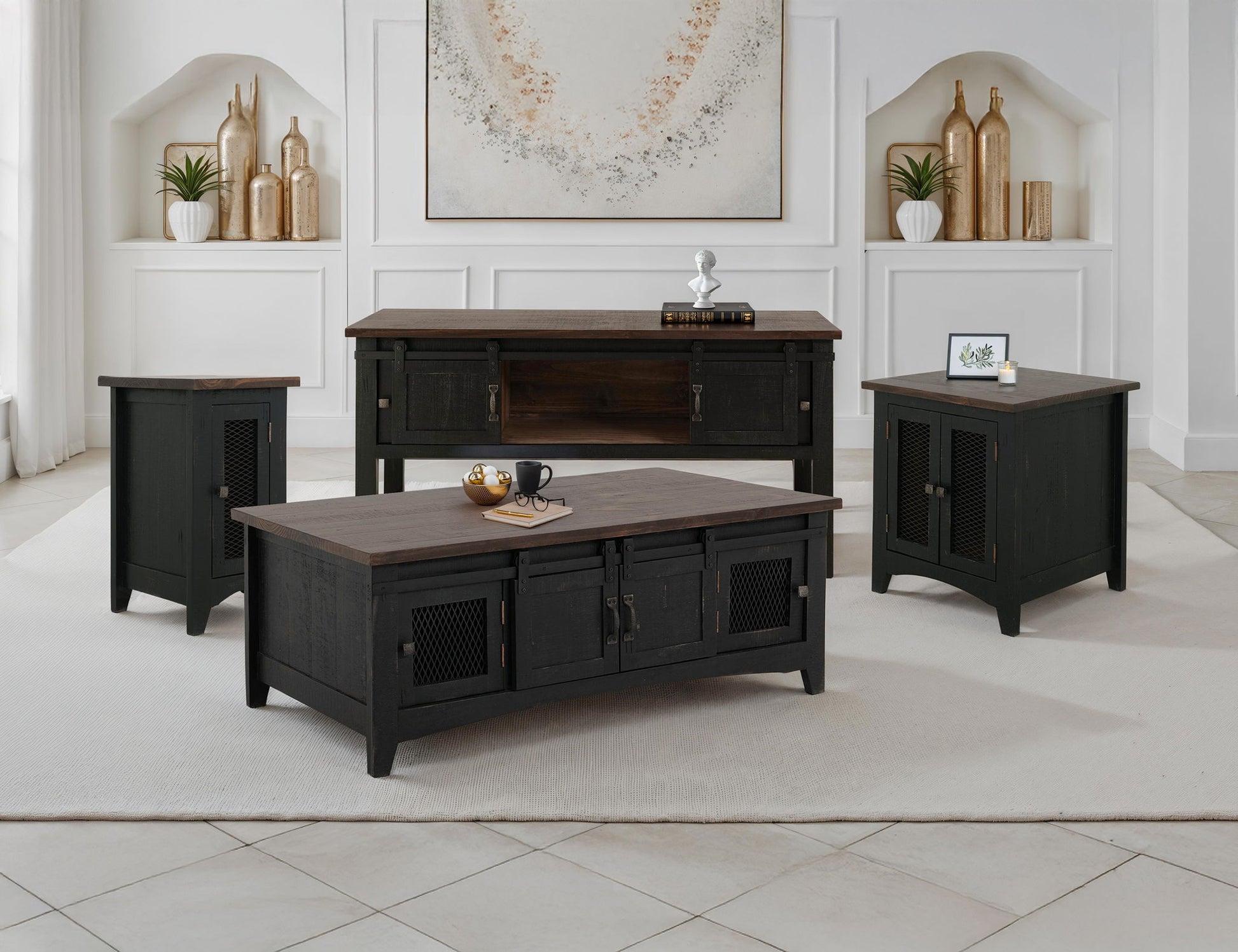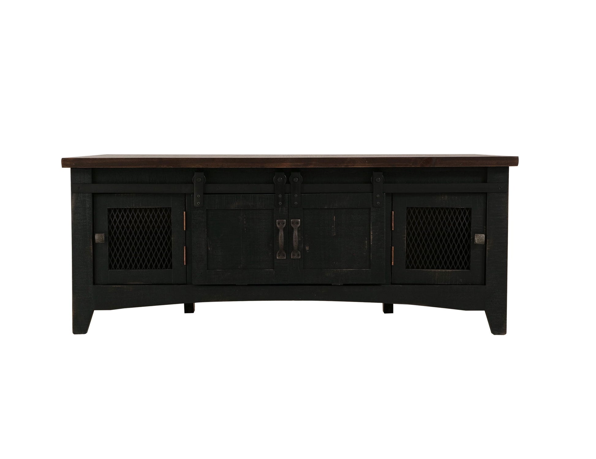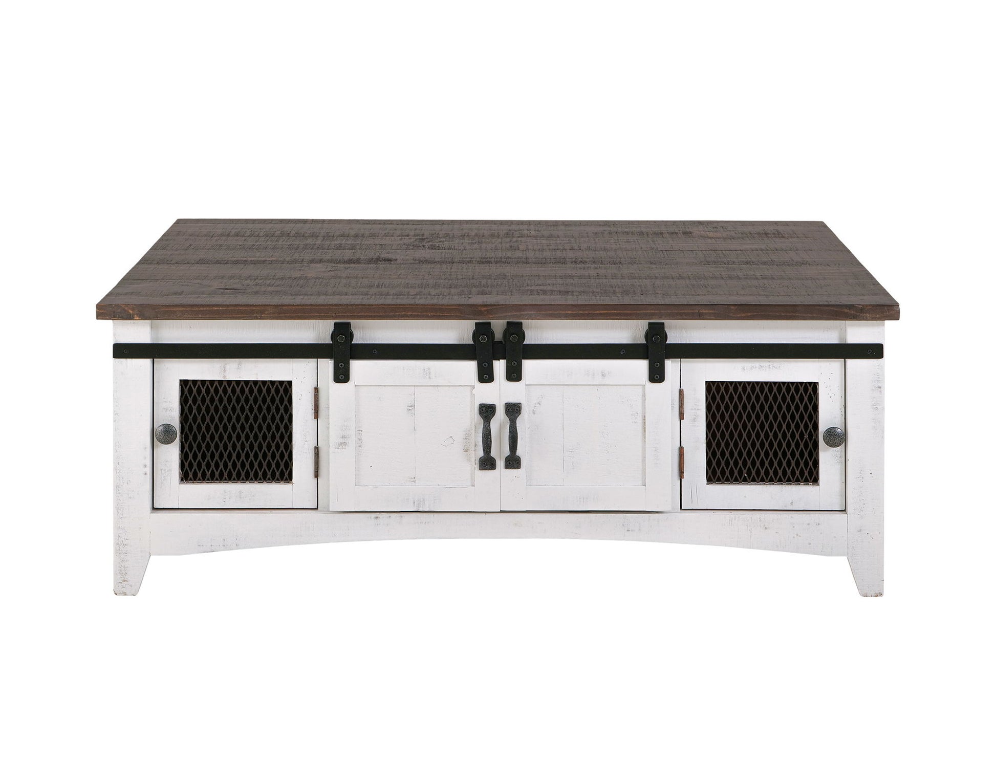 4 Sliding Doors, 4 Metal Mesh Doors Cocktail Table. Introducing our Pueblo collection, crafted from solid pine wood. This rustic collection is the perfect addition to bring your dream space to life. It features a hand-distressed finish on the tops.