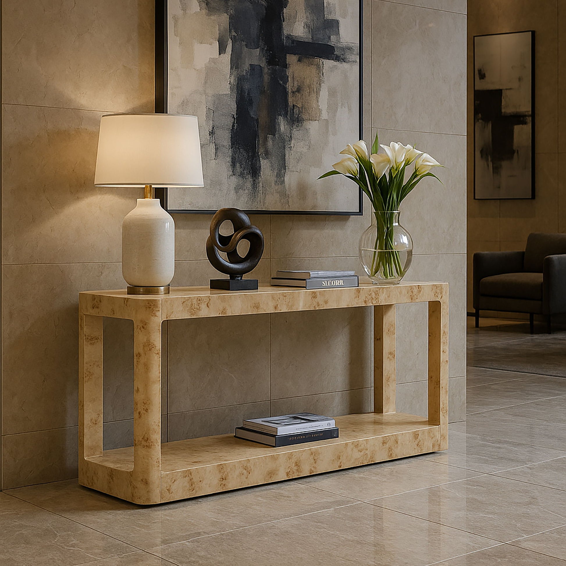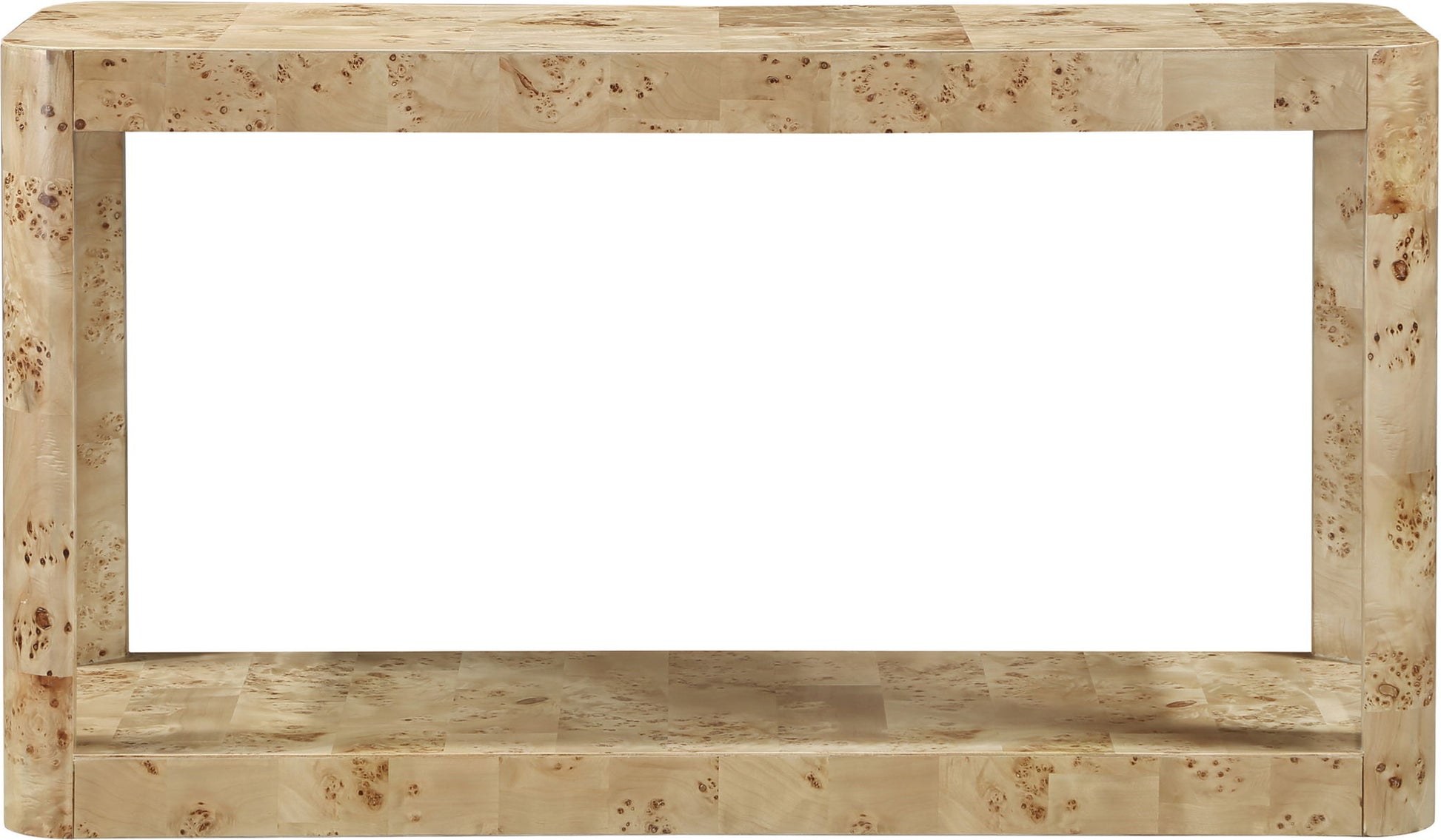 Bring home the Reeves Burl Table to give your room a fresh new look. This art deco table features a sleek design with rounded corners and a bottom shelf ideal for storing items you use most handily nearby. Oak veneer and solid wood with MDF construction give the table a sturdy demeanor, so it holds up to use by your busy family. A chic finish and natural wood grain variation ensure that this table blends nicely with existing decor in your modern home.