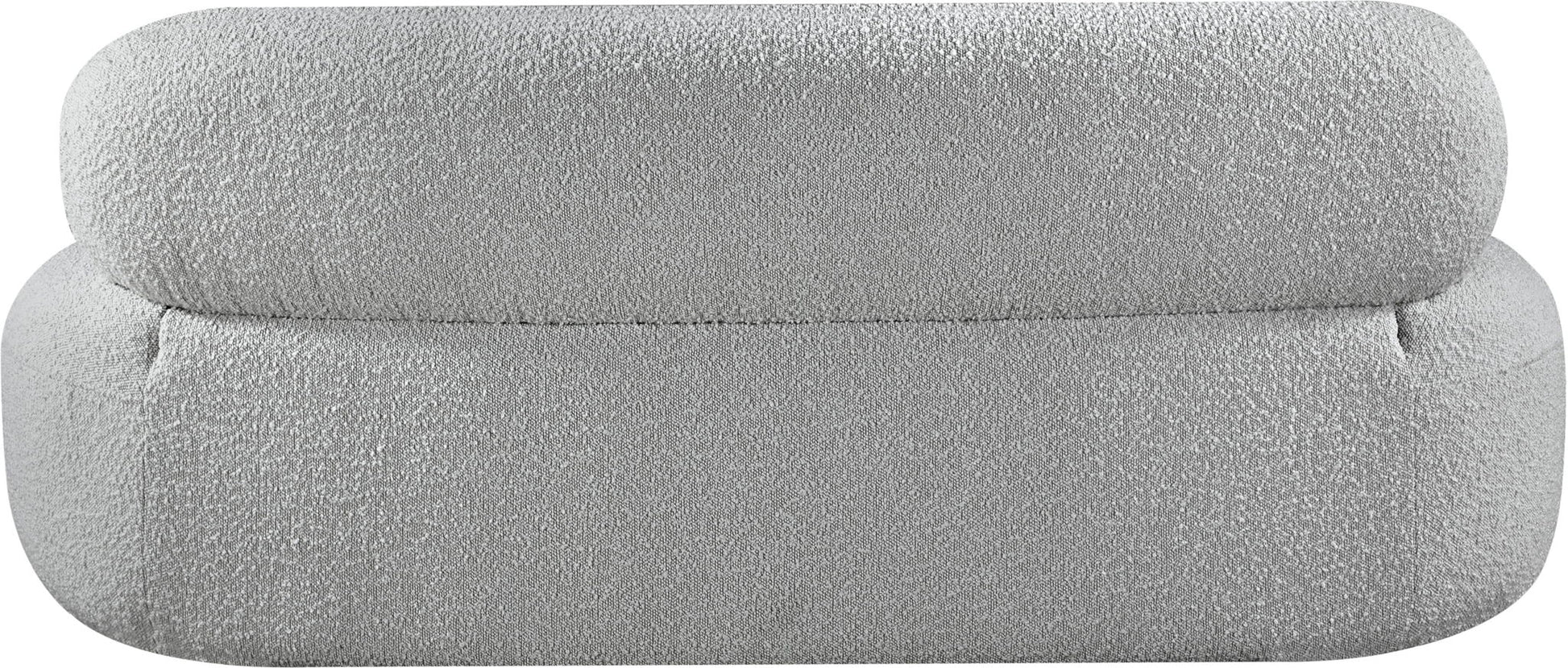 Discover timeless beauty with this Venti boucle fabric living room loveseat that's designed to elevate your interior space. This exceptionally crafted art-deco-inspired chair is part of the Venti collection and boasts an alluring curved shape to add elegance and refinement to your room. Upholstered in rich boucle fabric, the loveseat has a plush texture that's oh-so-cozy against the skin. The art deco styling makes it a real statement piece, whether you place it in your living room, home office, or your favorite reading nook.