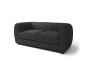 This compact living room ensemble is full of welcomed surprises. The tall arms and low back is an obvious homage to the tuxedo style, but the bulbous shape and smoother lines is a unique twist taking inspiration from the modern era. Underneath the seat cushions are high density foam, making firmer seats than one would expect for the shape that it is in. Finally, soft boucle fabric wraps around the whole piece highlighting a certain air of elegance and quiet class.