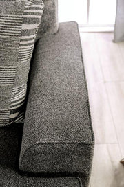 HOLBORN Sofa, Gray, 101"L X 44"W X 40"H, 125lbs. This beautiful sofa and loveseat combo features clean lines with classic silhouettes to fit a wide variety of styles. Pillow backs and plush cushions provide a plush seating experience, all made from luxurious chenille upholstery. Trimmed in matching welt, the wide track arms are low in profile, perfect for your hands or head. It comes with accent pillows designed specifically to match the neutral palette of the base color--hues of gray catch the attention of guests and family alike.