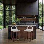 Conrad - Velvet Counter Stool With Brown Legs - White