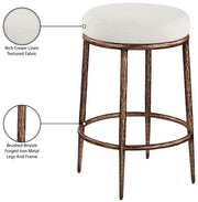Ferro - Linen Textured Performance Fabric Upholstered Backless Counter Stool - Cream / Brushed Bronze